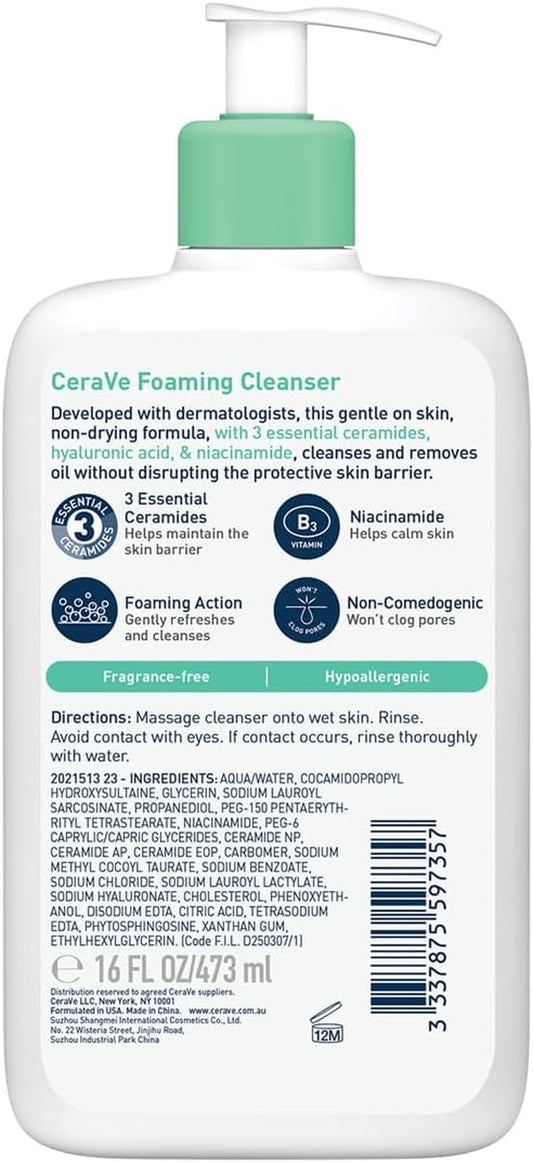 Foaming Cleanser Gel Face Wash 473Ml, for Normal to Oily Skin, Removes Oil without Disrupting the Protective Skin Barrier, for Face & Body, Niacinamide + Ceramides, Fragrance Free, Oil Control